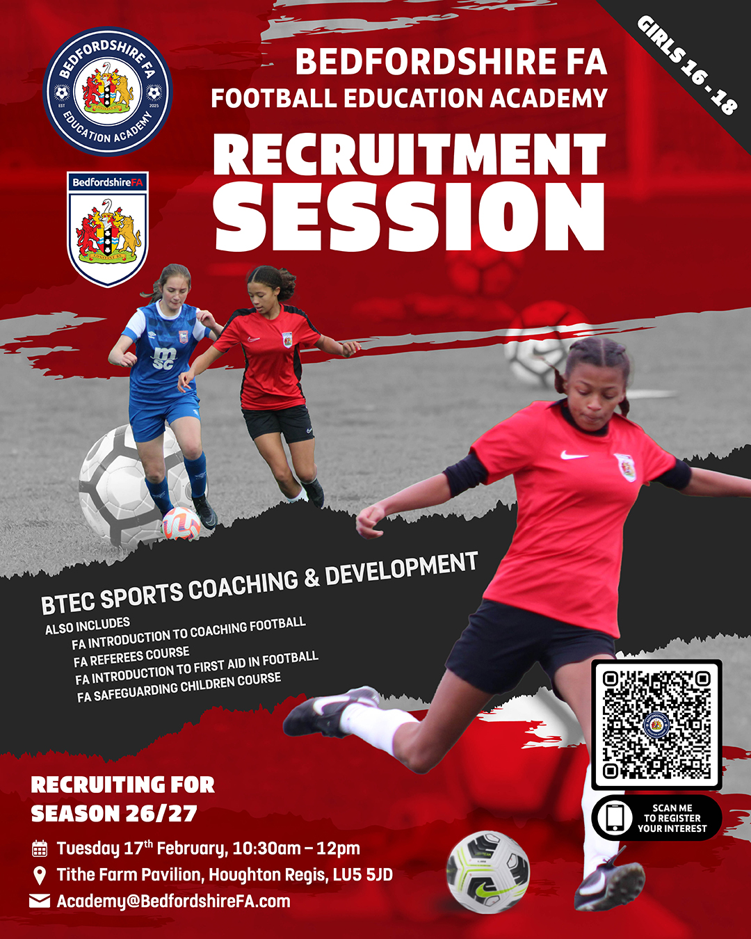 If you have any questions please contact: Academy@BedfordshireFA.com / 01582 565111