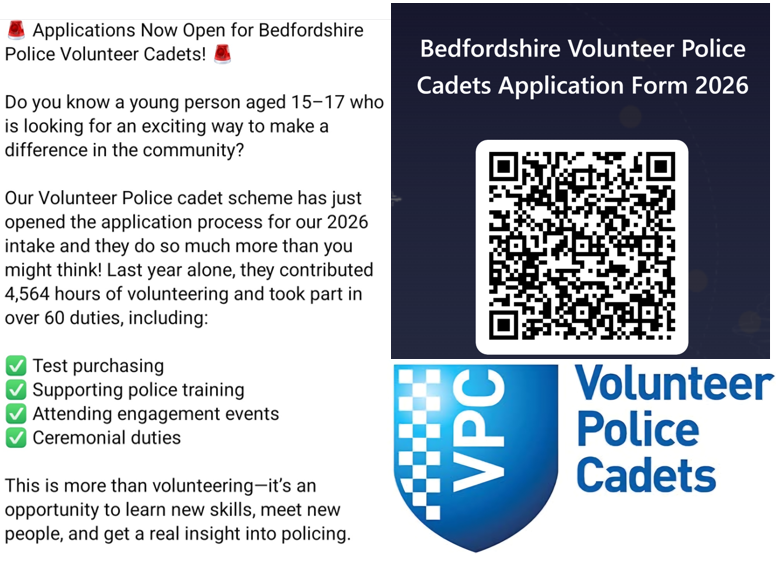 The programme starts in September until the following July, with training being held at Kempston HQ and Dunstable Police Station on a alternative Tuesday evenings from 7pm to 9pm.